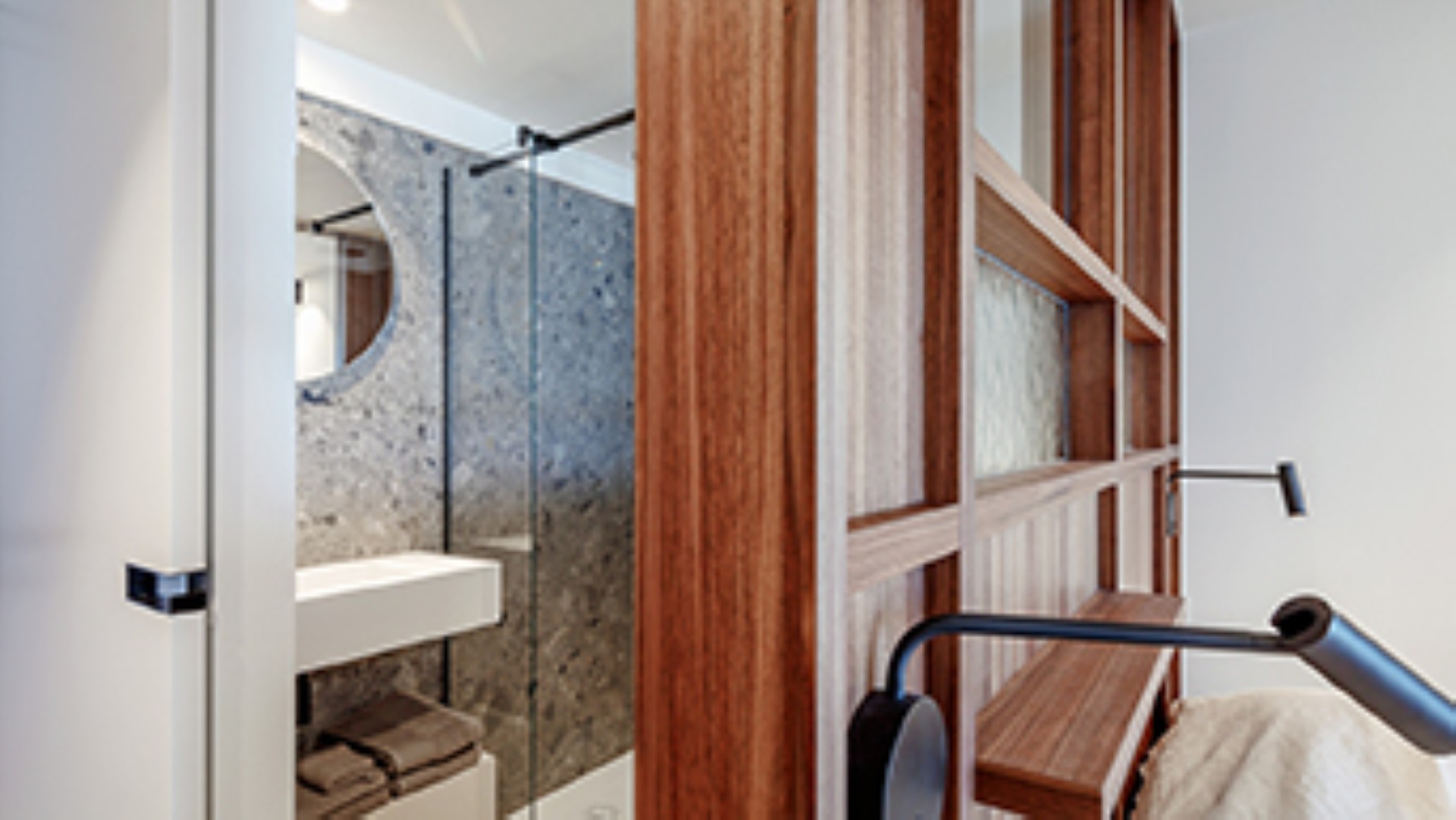 L’optimisation maximale des espaces, qui aboutit sur un studio loin d’être surchargé et pourtant parfaitement équipé. Discrétion et élégance habitent le logement, sans que le confort n’en soit impacté.